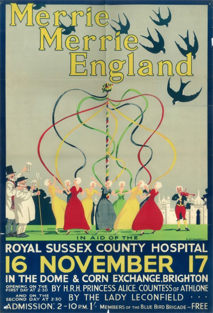 Merrie, Merrie England, 1917 funding appeal promotional poster. Merrie, Merrie England would have taken place during World War I. Brighton was a popular place for the rich and aristocracy from across Europe during WWI, as Brighton was seen as a safe place to visit away from London.