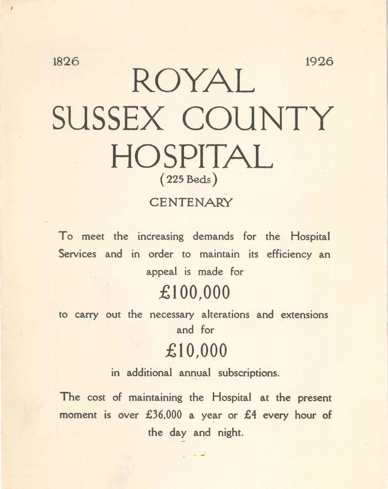 Royal Sussex County Hospital 1926 centenary fundraising poster